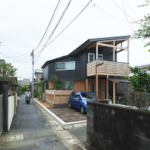 街中の細い路地に建つ住宅。 路地の角地であること、駐車スペース、太陽光パネルなど、物理的な条件から 削り出された形状は地域に溶け込み、そして豊かな内部空間を生み …
